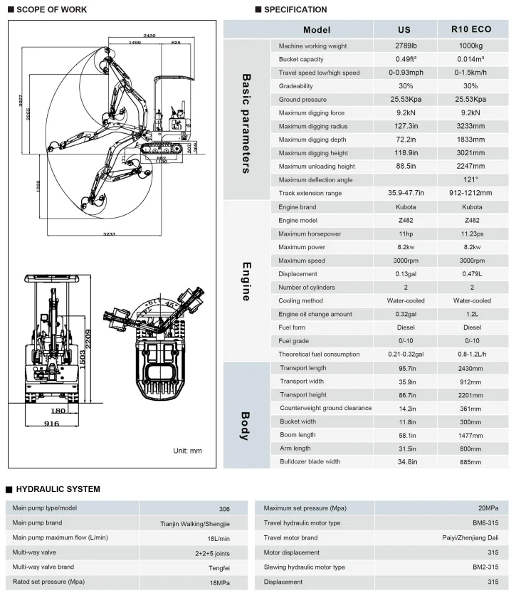 ✔ R10 ECO avec moteur Kubota – Fiabilité et performance supérieure avec un moteur Kubota